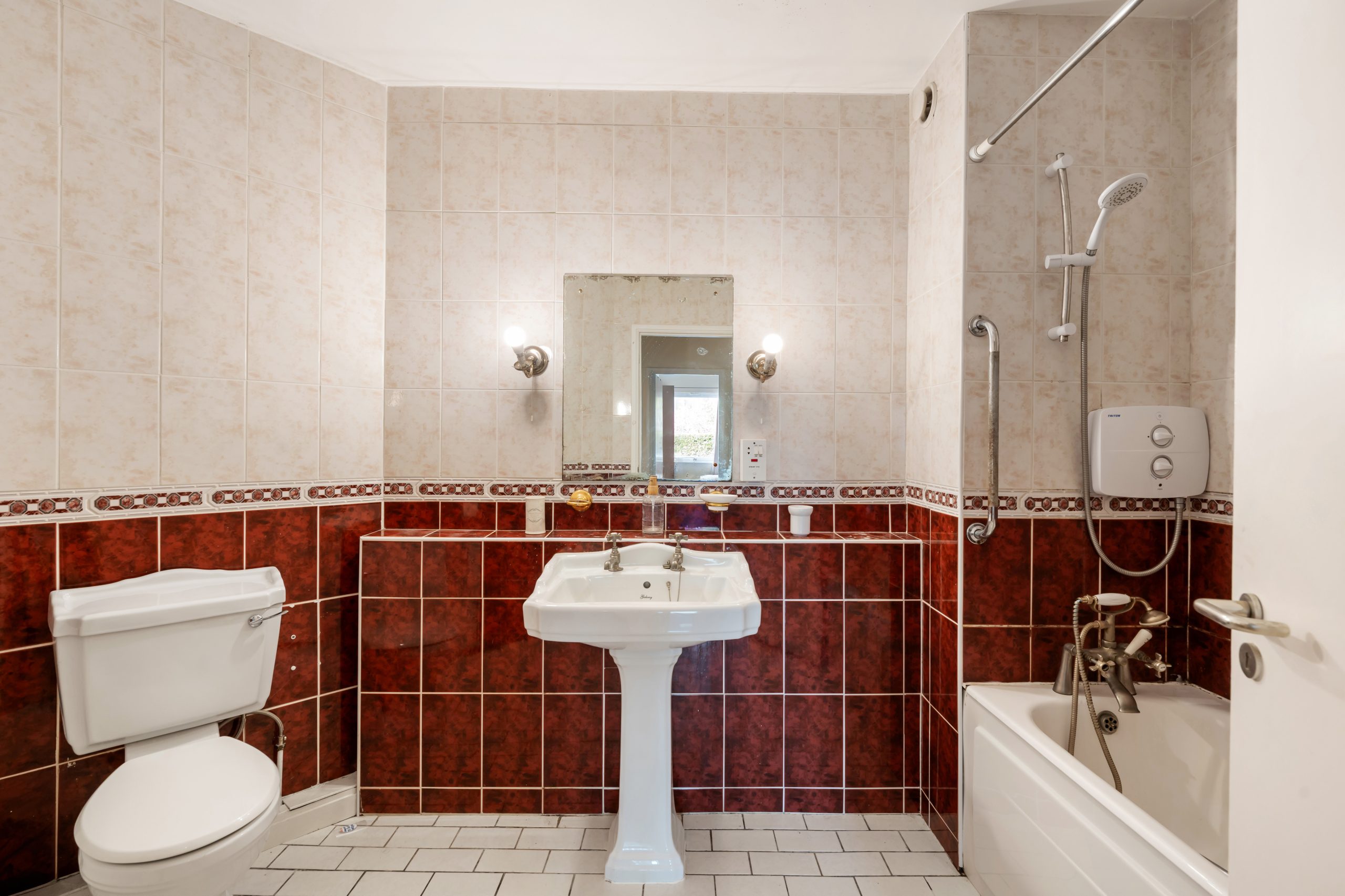 Bathroom:2.17m x 3.28m floor to ceiling tiling, shower/bath unit, w.c, w.h.b