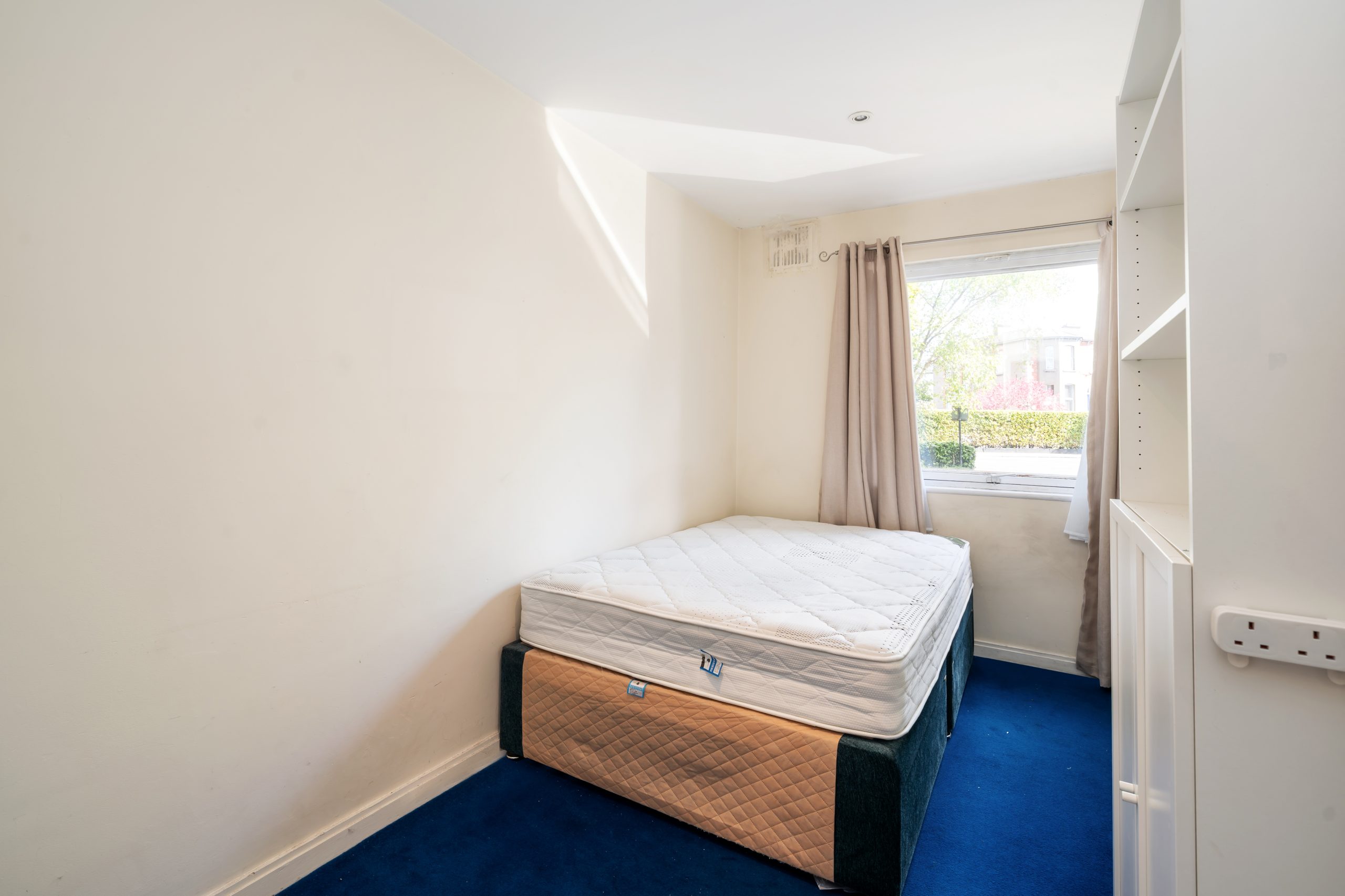 Bedroom 2: 4.34m x 2.18m carpet flooring, recessed lighting, built in wardrobes, window to front
