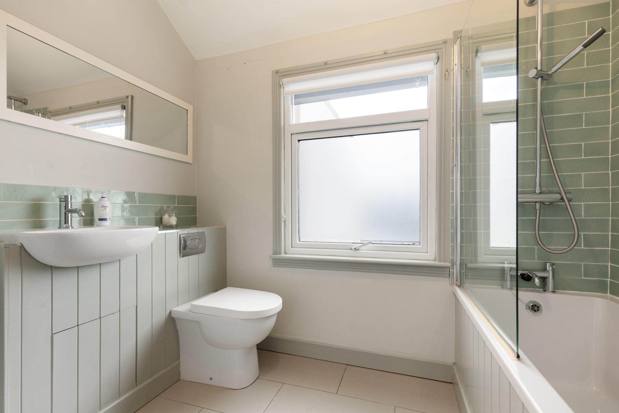 Bathroom: 2.10m x 2.24m tiled flooring, half tiled walls, bath unit, W.C., W.H.B.